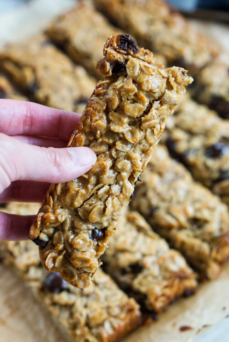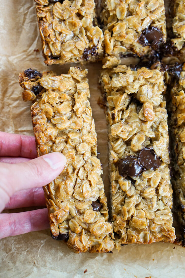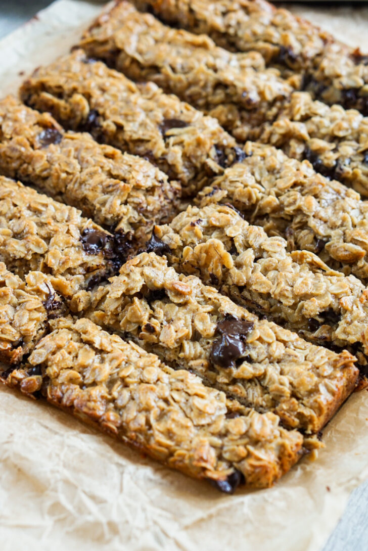 By the way, I know some people like crunchy granola bars. I made this recipe to be soft and chewy, since that’s the texture my kids like. If you want more crunch, you can reduce the amount of coconut oil and also bake until the top surface is all golden brown and crisp.