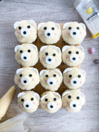 For a fun winter baking activity with kids, try these polar bear cupcakes!