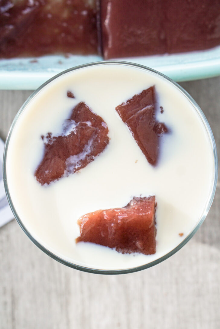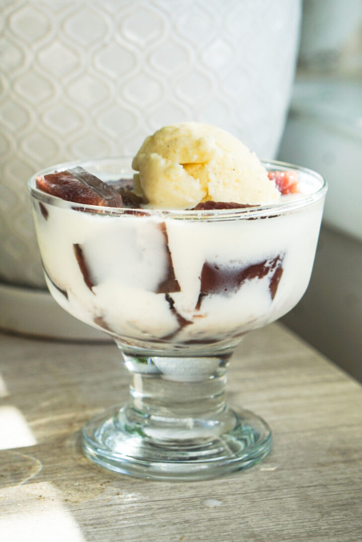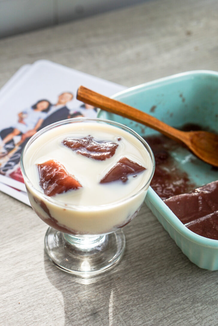 You can eat this jelly on its own or pour some condensed milk or whole milk over it. It’s also fun with a scoop of vanilla ice cream.