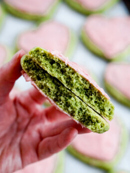 Soft Matcha Almond Cookies with Strawberry Buttercream