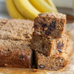 Allow the banana bread to cool slightly before slicing and serving. Leftovers keep in an airtight container at room temperature.