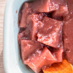 Meanwhile, mix red bean paste and remaining room temperature water in a small saucepan over the stove. Heat until the red bean paste is dissolved and the mixture is warm enough to dissolve the gelatin. It does not have to be boiling. Add the bloomed gelatin and stir to combine.